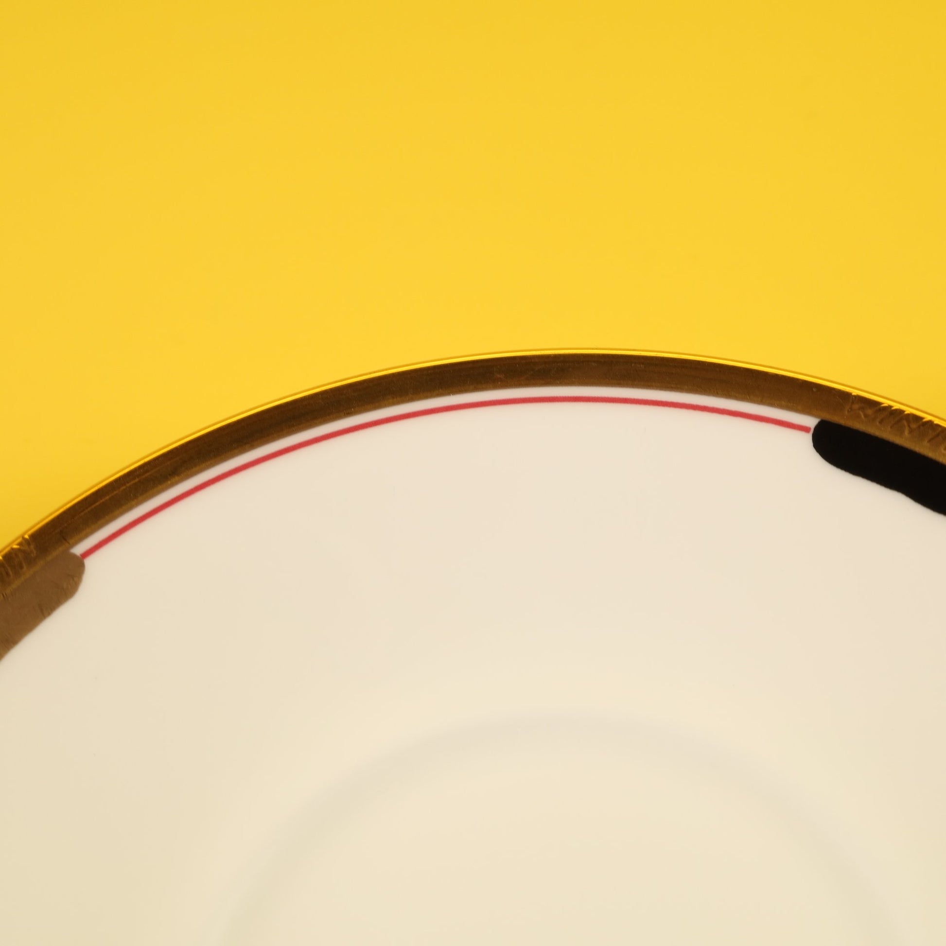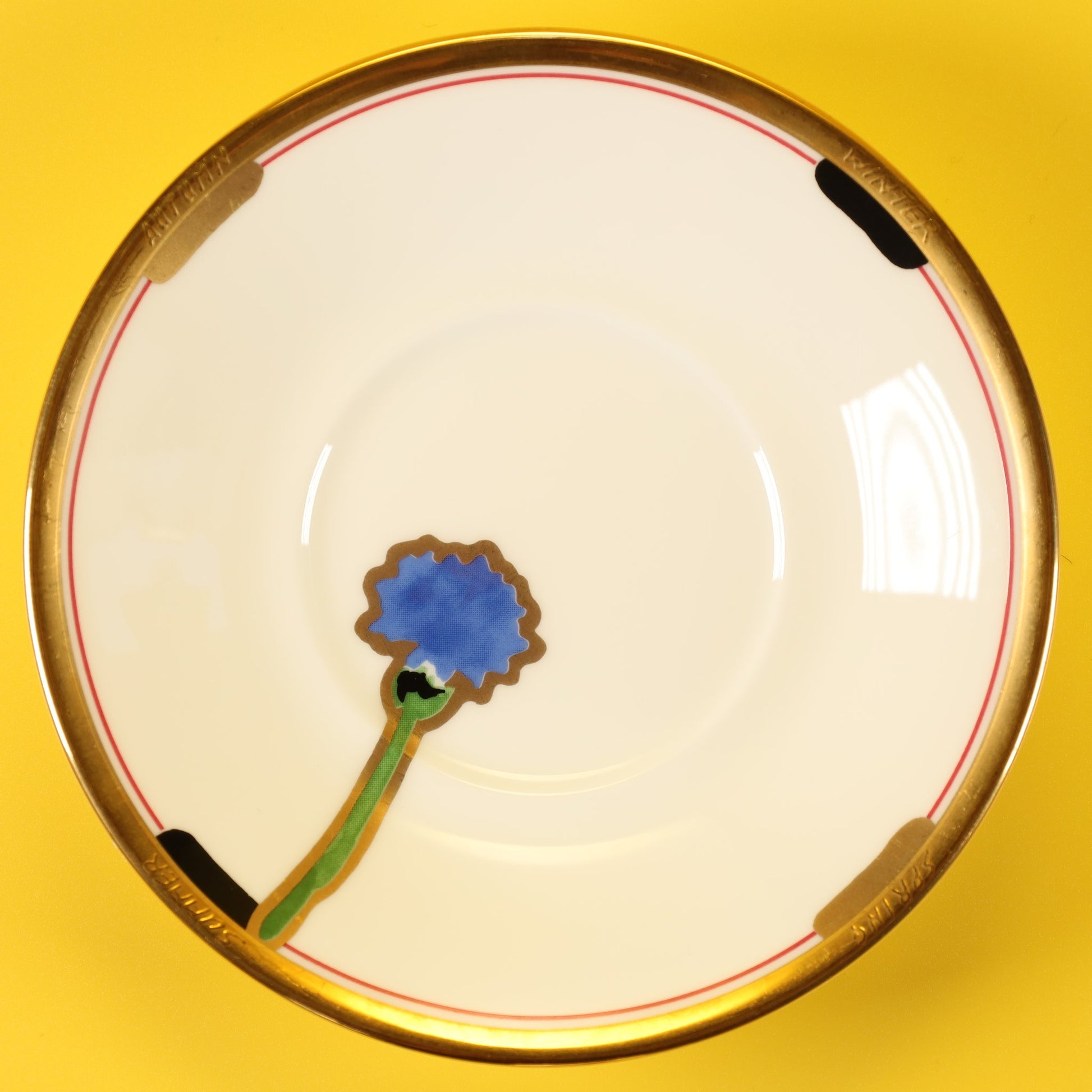 「この金の縁取りをご覧ください。職人の手仕事ならではの、絶妙な輝きを放っているんです。和のモチーフを洋食器に取り入れた、まさに『ネオジャパネスク』の真髄と言えますね。」